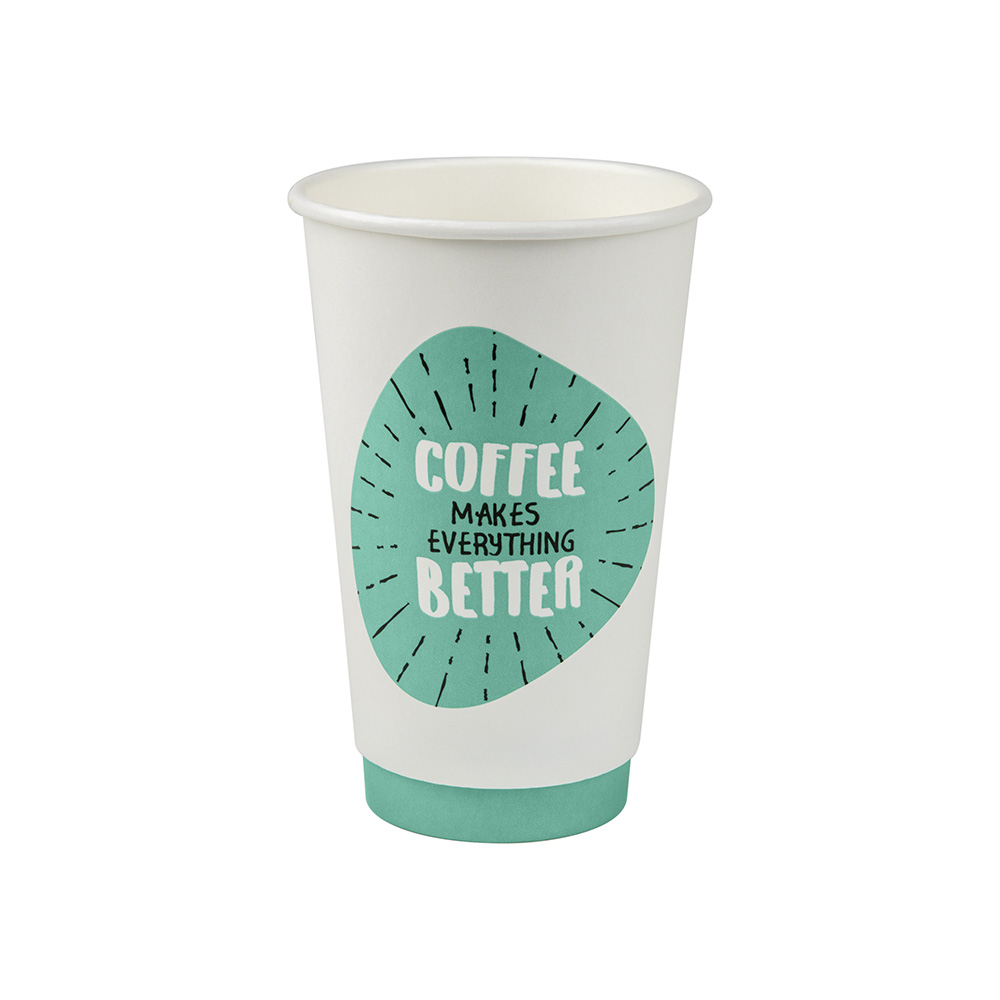 16oz/475mL Double Wall Hot Coffee and Tea Cup in the Quotes Series. Offering cool-to-touch double wall insulation properties,our quotes series has three fun prints randomised within the sleeve. Made using sustainably sourced premium paper and with one-fit lid options available.
